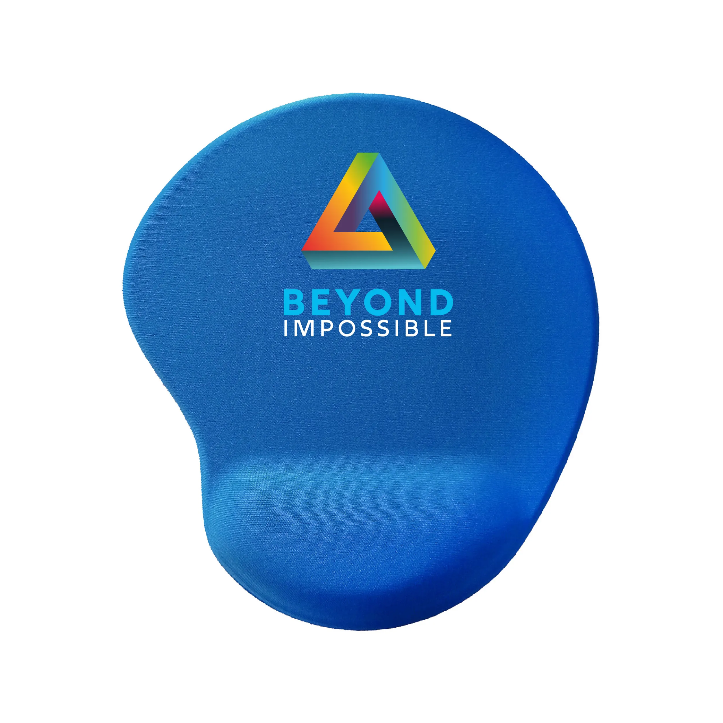 Ergonomic foam mouse pad in blue color, combining work comfort, high-quality construction, and affordable price. Full personalization option makes it an ideal promotional tool and corporate gift.