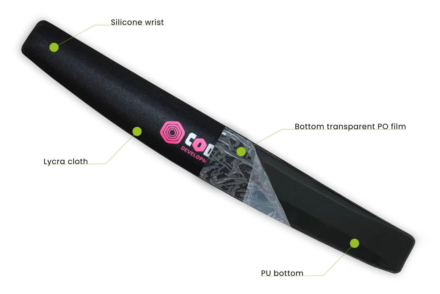 The keyboard rest together with the ergonomic gel mouse pad make a set, as they are made of the same materials and can be similarly labeled.