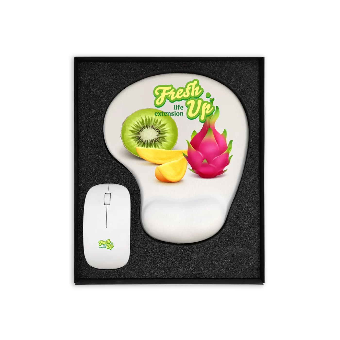 Eleganckie zestawy upominkowe, w skład których wchodzi ergonomiczna podkładka pod mysz i myszka komputerowa.
