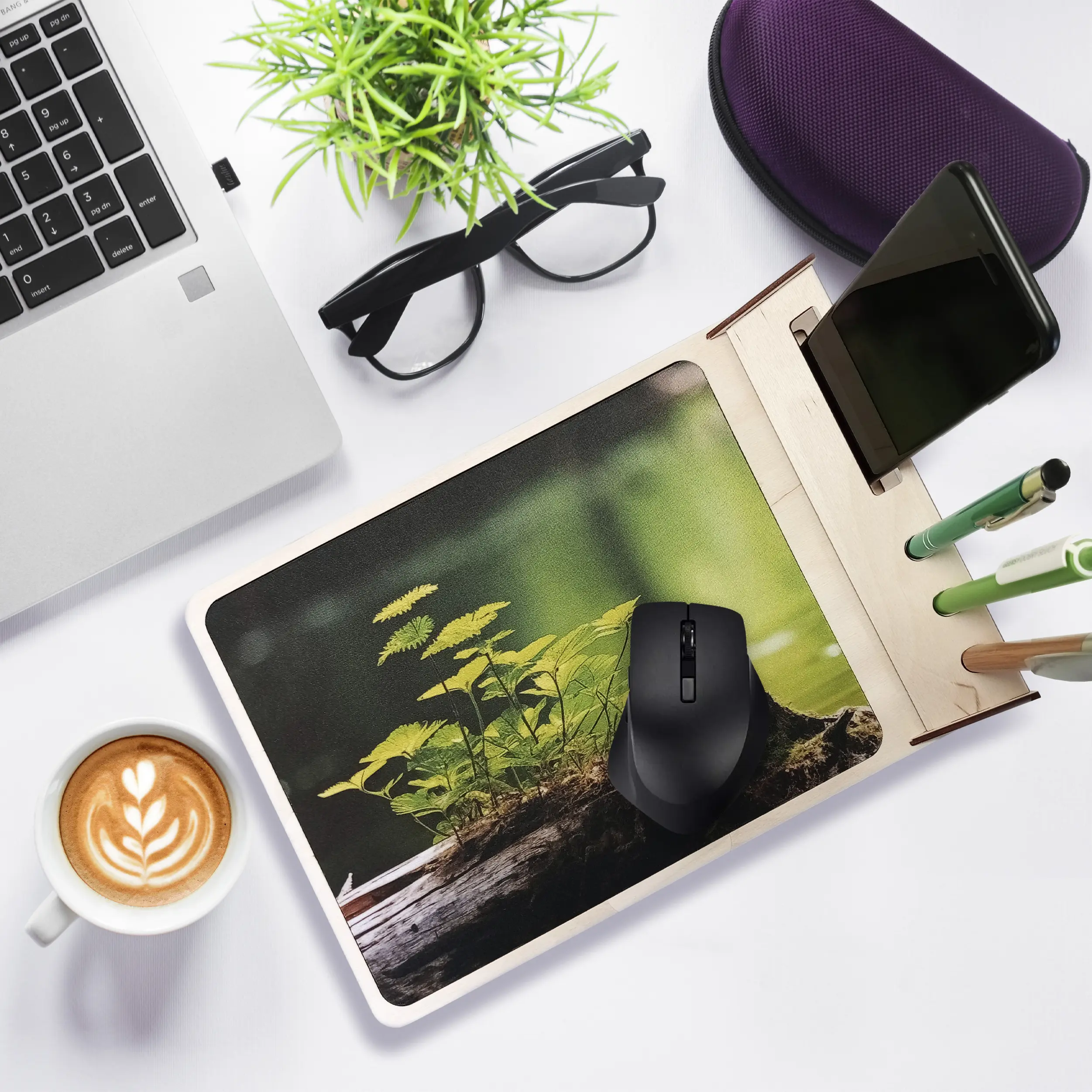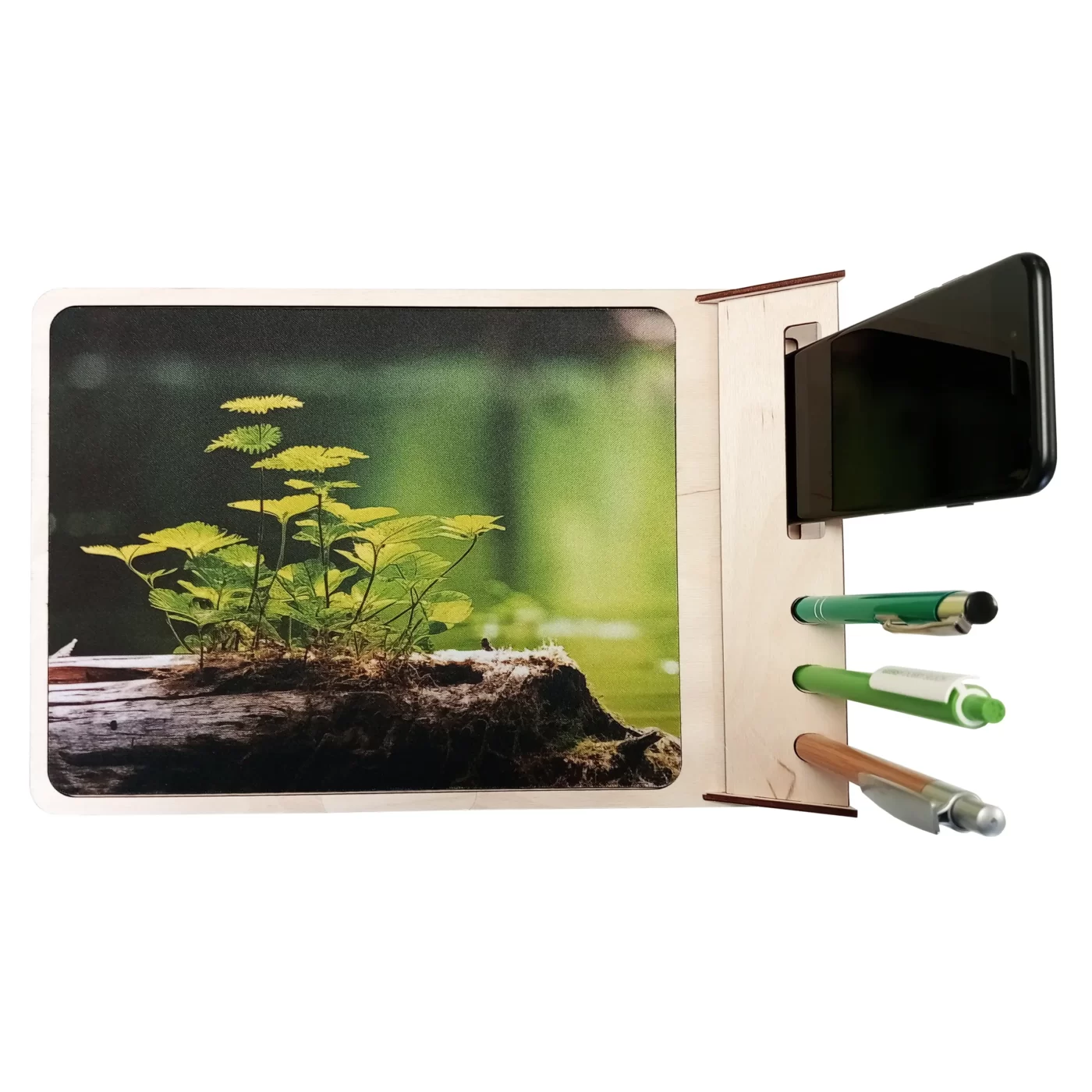 Podkładka pod mysz do sublimacji w drewnianej obudowie z miejscem na telefon i długopisy /SUBPT(00)/